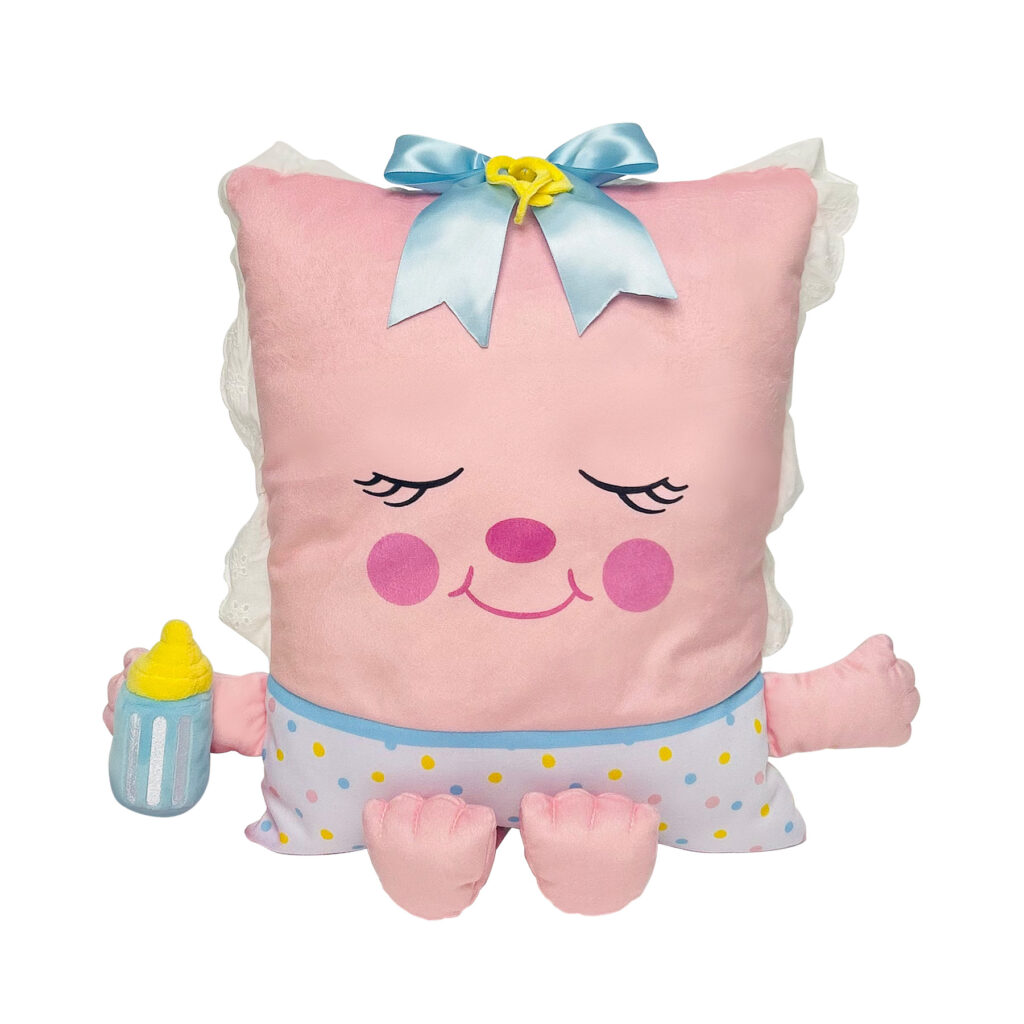 Product Description: She needs pampering, as all babies do. She loves to rock in a rocking chair or be held and soothed. Her other pillow friends are constantly having to rock her to sleep…the trouble is, THEY tend to fall asleep and not Rock A Bye baby. She is learning how to talk like all babies. She gets her words totally jumbled and confused, especially when she is upset or tired. Rock A Bye Baby loves to be hugged and kissed and treated like a baby.