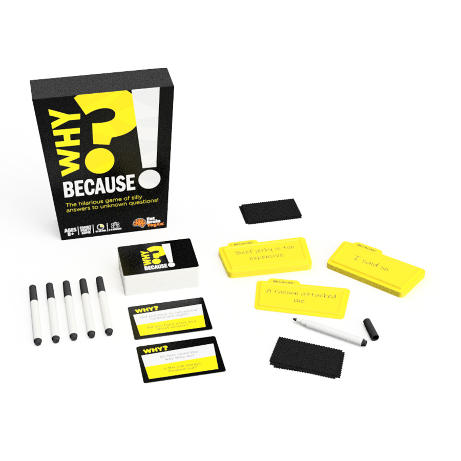 Product Description: Why should you play this game? Because Uncle Fritz’s gerbil farm went bankrupt! In this rib-tickling card game, players come up with absurd, silly, and outrageous “because” answers to match with randomized question cards. First, the judge reads a question aloud. Next, all the other players play one of their pre-written “because” answers. Then, the judge picks their favorite answer. If your “because” gets picked, you get a point! Challenge your creativity and get everyone giggling with the hilarious game of Why Because!