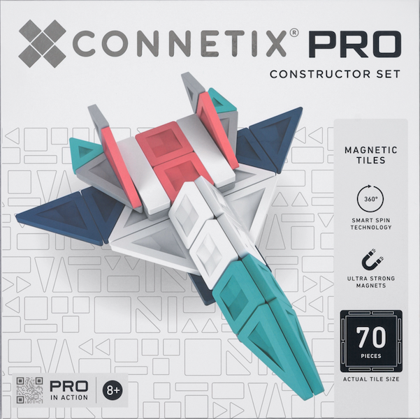 Product Description: Build like a PRO with this advanced line of magnetic tiles specifically designed for critical thinkers and older creators. Introducing CONNETIX Smart-Spin technology – enabling ultra-powerful magnets to rotate 360 degrees within the tile and ‘click’ into place, allowing builders to construct in exciting new directions and angles to create the impossible. Offering an elevated experience from standard tiles, the PRO line gives designers the freedom to overlap, offset, and stagger tiles to construct like never before. Engineer boats and robots, design interiors and furniture, create characters and creatures, plus so much more – this innovative line inspires the creation of more complex, detailed, and functional designs. Featuring a dynamic range of magnetic tile shapes in six contemporary colors, including squares, rectangles, three types of triangles, plus post and plank pieces that push the limits of design and functionality, the extra-strong, self-aligning magnets allow creators to pick up, share, and interact with their designs on a whole new level. The unique features and limitless potential of the PROs provide the ultimate open-ended construction toy for older children and kidults alike!