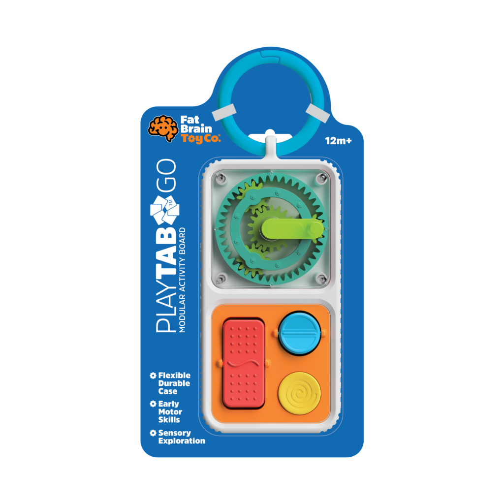 Product Description: Take the joy of PlayTab with you wherever you go! The two included sensory tiles securely pop into the flexible, durable case, and you can switch them out for any other PlayTab tiles. Plus, it has a clip for hanging from a car seat or stroller. Mix, match, and play on the go!