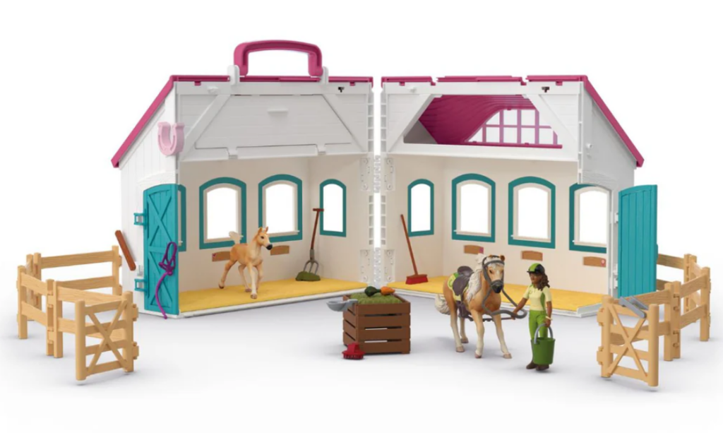 Product Description: Sarah enjoys her time in Lakeside’s Open Stable “Little Horseshoe”. The horses are particularly happy here because they are outside so much. When Sarah opens the gate to the paddock, the friendly Haflinger mare comes straight towards her. Sarah gives her a carrot and then puts the saddle on her. She would love to go for a ride today, but the foal is still a bit too young. Later Sarah will put the lead rope on her and get her used to it gradually. Just make sure the gate is locked! Otherwise the little one might bolt if it is startled.